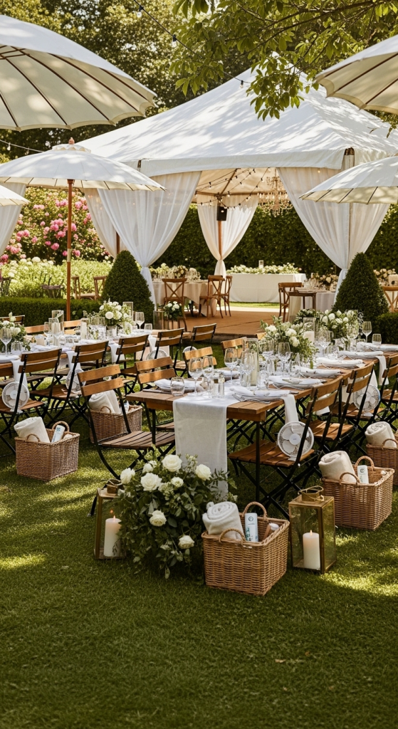 While aesthetics matter, guest comfort is equally important. Provide shade using marquees, parasols, or large tents, especially in summer. Consider offering fans, sunscreen, or even bug repellent packs for open-air celebrations. In colder months, outdoor heaters, blankets, or a firepit can keep the atmosphere cozy and inviting.